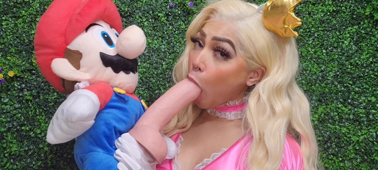 Watch as Mirage roleplays as Princess Peach. Join Peach as she practices oral tricks on her Mario pillow. This clip features dildo play/ mouth to dildo/ messy oral/ roleplay/ pillow play.