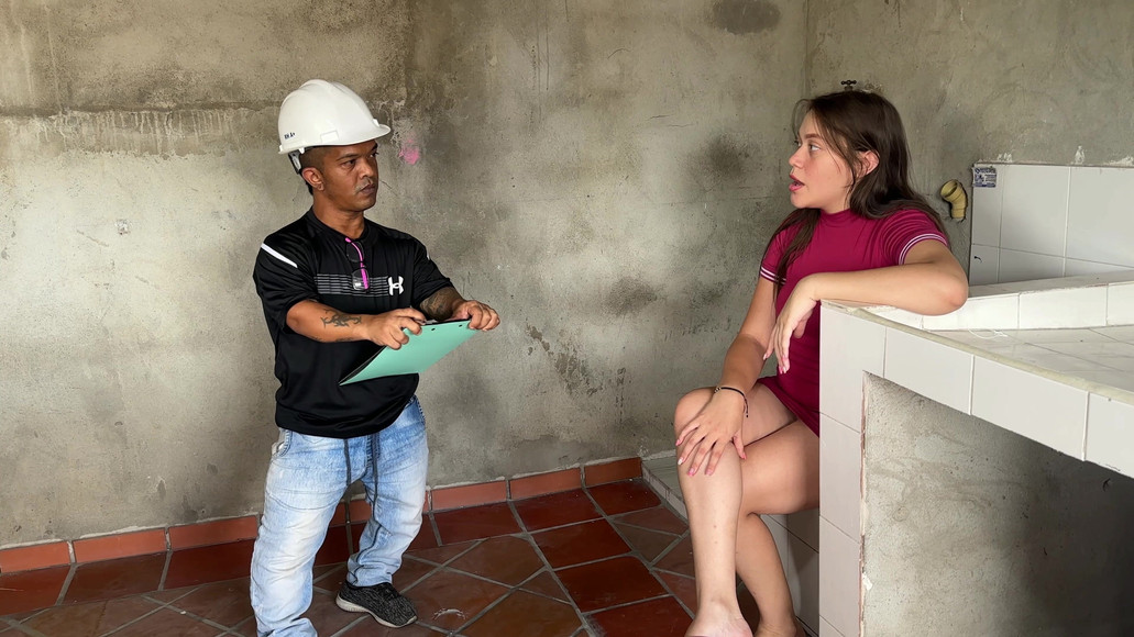 Little engineer fucks a pregnant girl in exchange for giving an inspection of her house until he ends up putting his huge cock in her rich and narrow pussy until he fills her with his rich milk