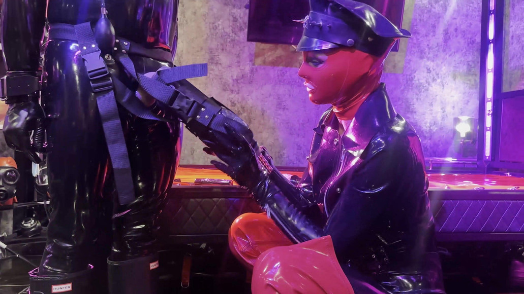 Ava Fetishart and Rubber, dressed in beautiful full rubber outs fits, dominate Pervs and Johnny Mountain using a latex Vaccuum Tower and a gas mask!